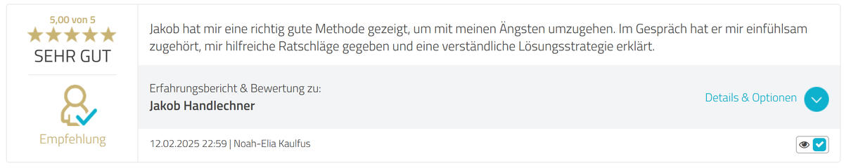 machten mir schwer zu schaffen.Nach 5 Psychotherapien, etlichen Coachings und jede erdenkliche Entspannungsübung, war ich immer noch am gleichen Punkt wie vorher - mehr oder weniger. Ich habe mich immer gefragt, warum mir keiner sagen kann, wie ich meine Ängste überwinden kann.Also musste ich mich selbst über 3 Jahre intensiv mit diesem Thema beschäftigen und habe es eher später als früher endlich geschafft. Ich finde, es gibt viel zu viele Methoden und Strategien, die nicht funktionieren können, wenn man sie einmal näher betrachtet.Aus diesem Grund habe ich es mir zur Aufgabe gemacht, anderen diesen unnötig langen Weg zu ersparen. Stattdessen will ich ihnen einen Weg aus der Angst zeigen, der bewährtermaßen funktioniert, wenn man am Ball bleibt.